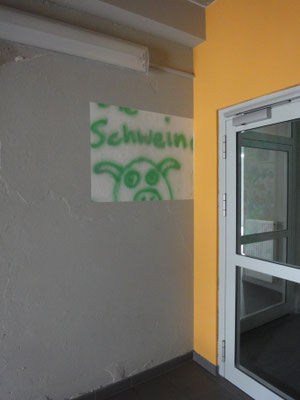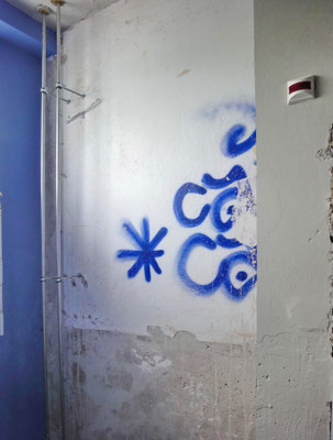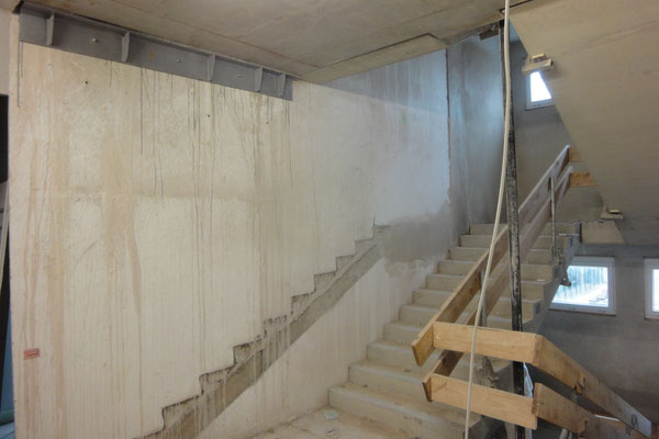 Diese künstlerische Aktivität wird befördert von einem interessierten und wohlwollenden Bauherrn, der vertrauensvoll die eigene Arbeit begleitet um Wandkunst