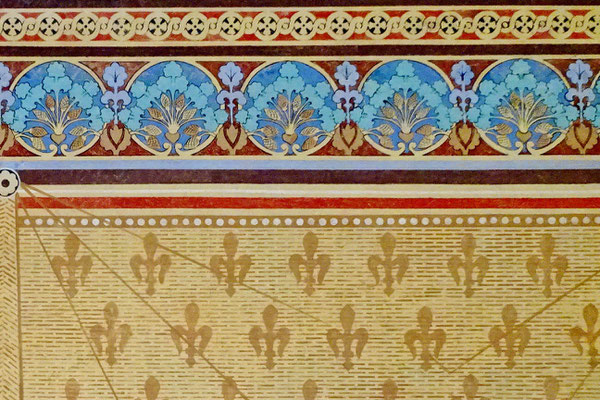Wo einst kräftige Farben und gemalte Bilder oder Dekorationen mit reichen Ornamenten oder epochale Figurenszenen die Wände bekleideten und verschönten, Innenräume einen eigenständigen und individuellen Charakter besaßen,